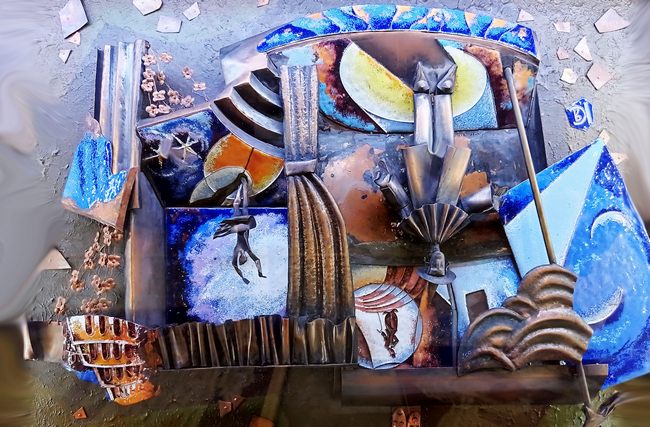 Есть достаточно необычные вещи. Например, декоративное панно «Театр», выполненное в технике пластического гнутья – особой технике деформации металла.