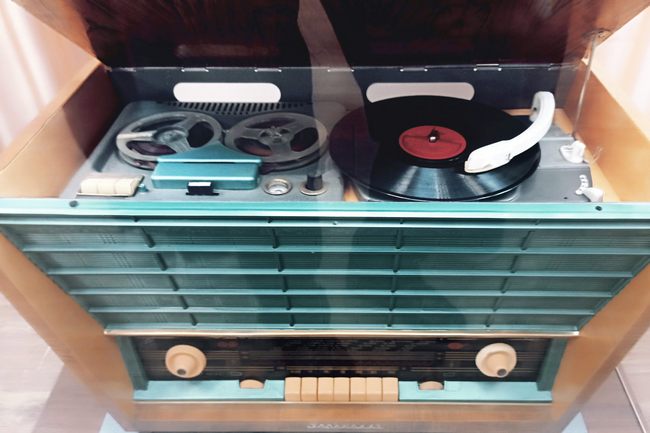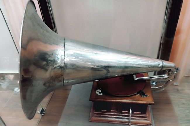 В экспозиции представлены музыкальные инструменты, технические средства звукозаписи, а также... бокалы, пила-ножовка и пишущая машинка.