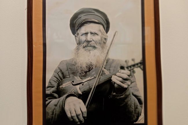 В дополнение к предметам устроители выставки подобрали фотографии. На одной из них запечатлен казак играющего на скрипке в начале XX века.