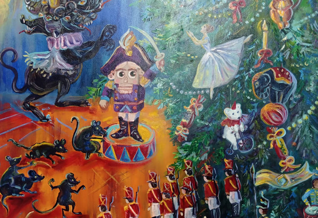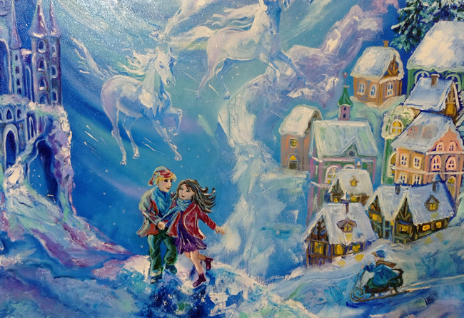 Мария МЕЛКОВА представила на выставку картины «В избушке у старушки», «Ночь перед Рождеством», «Посейдон и Нереида», «Ёжка», «Сказка о снежной королеве», «Вдохновение», «Ради жизни на земле», «Щелкунчик».
