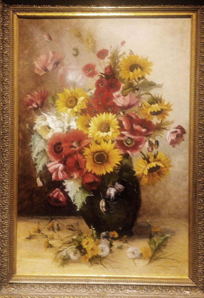 Совершенно неожиданным выглядит здесь единственный натюрморт – «Букет с маками и подсолнухами».