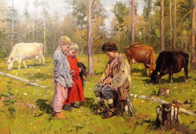 Владимир Маковский живописал крестьянский быт. Современники отмечали особую повествовательность его произведений и глубокое понимание жизни простых людей.