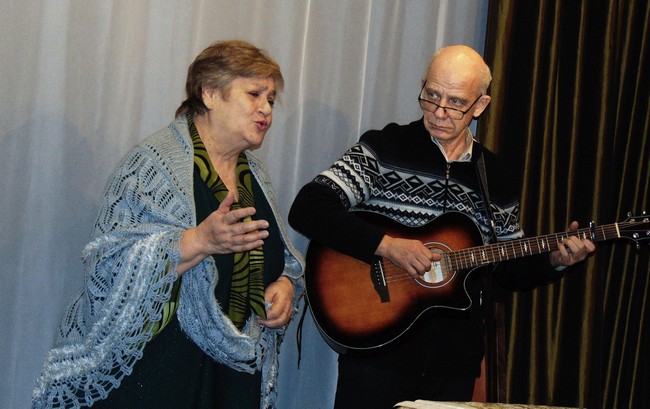 Юбиляра поздравили омские барды Елизавета ВИТМАН и Андрей ГАЙДАМАКИН, исполнив несколько песен.