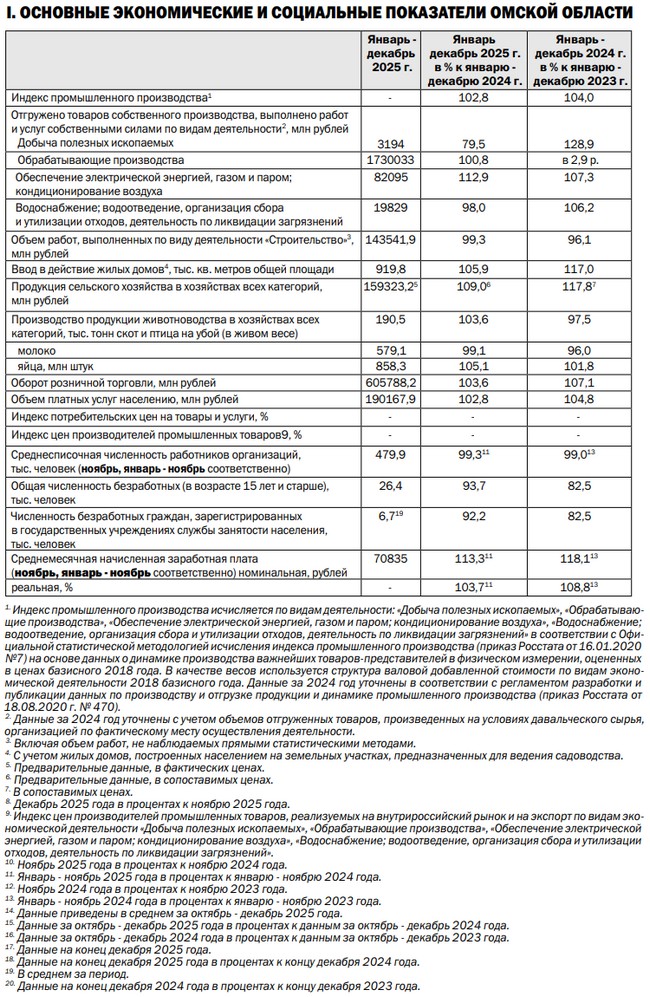 Социально-экономическое положение Омской области за январь-декабрь 2025 года.