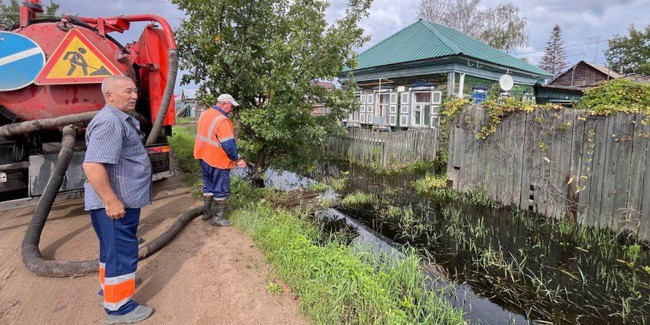 В райцентре Таврическое и в частном секторе Омска продолжает работать водооткачивающая техника.