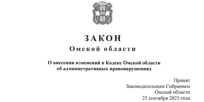 Изменения в кодекс были приняты 25 сентября Заксобранием Омской области и утверждены 1 октября губернатором Виталием ХОЦЕНКО. Закон вступает в силу на следующий день после дня его официального опубликования.