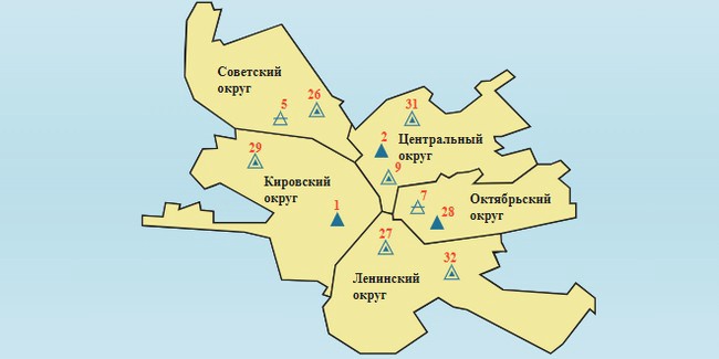 • Советский округ – взвешенные вещества, оксид углерода, оксид азота, диоксид азота, сероводород, аммиак;