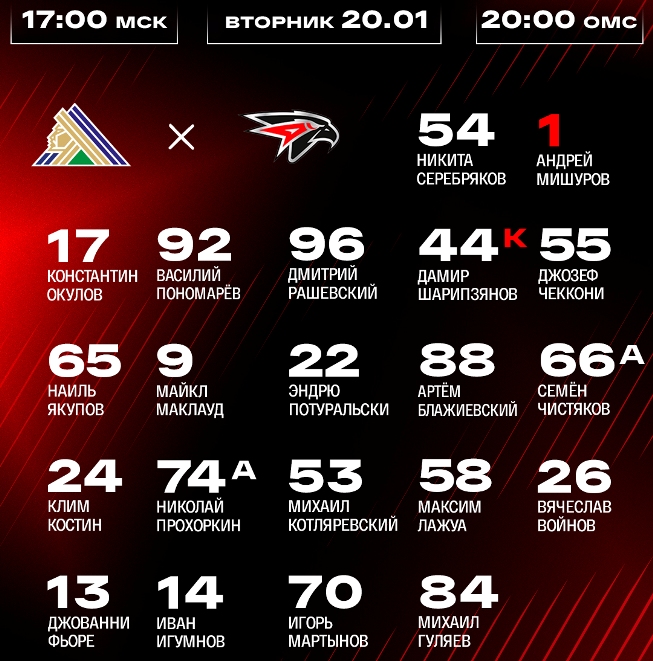 Разгромив «Трактор» в Челябинске омские «ястребы» улетели в Уфу, где 20 января хоккеисты «Салавата Юлаева» (47 игр, 48 очков, шестое место на «Востоке») проиграли «Авангарду» (45 игр, 63 очка, третье место) со счётом 2:5 (0:3, 1:0, 1:2).