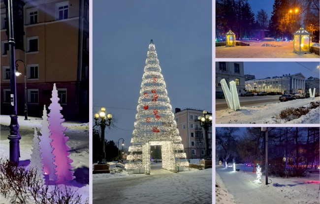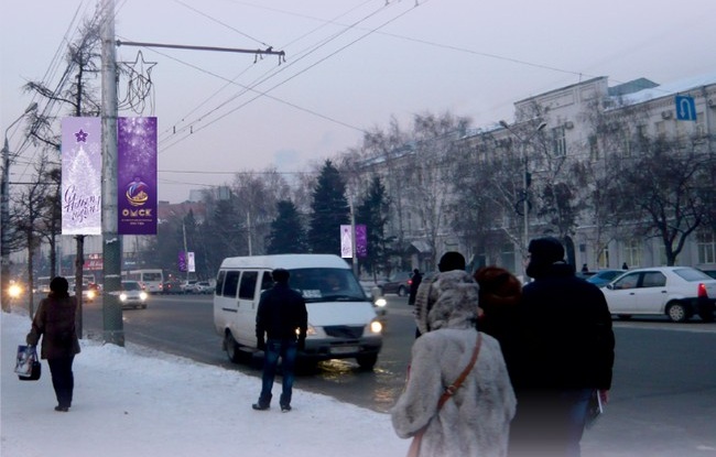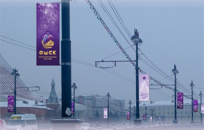 – Улицы города украсят баннеры и флаги с логотипом конкурса «Культурная столица года» – именно в этом статусе Омск встретит новый 2026 год. Омская версия логотипа включает силуэты достопримечательностей разных эпох: Тарских ворот, драматического и музыкального театров, Успенского собора и «G-Drive Арены». Цветовая палитра новогодней концепции также перекликается с брендбуком «Культурной столицы»: преобладающий цвет элементов – чернильно-фиолетовый и оттенки фуксии. Стилистически два события объединяют и использованные фотоклипарты, переведённые в соответствующую гамму.