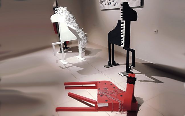 Но символ года все-таки уверенно заявляет о себе, например, в проекте «Новогодний КОНЬструктивизм». Это четыре образа: «Пегас», «Конь педальный», «Конь в пальто» и «Конь не валялся». Автором числится загадочное «творческое переплетение ТРИКО», но скажем по секрету: коней сотворили сотрудники музея, переделав объекты другой выставки – фанерные рояли.