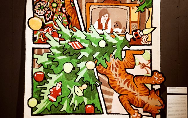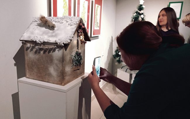– В этом году у нас много коллективных участий, много больших инсталляций и фотозон, – рассказала куратор выставки Анастасия ГАРАЕВА. – Наверное, самая впечатляющая инсталляция – «Когда мы станем большими» Татьяны СЕМКОВОЙ. Это такое воспоминание о детстве. «Школа креативных индустрий» – наши постоянные участники, любимцы проекта, на этот раз представили два объекта. Первый – домик-скворечник, в котором можно открыть дверцу и увидеть, как белки внутри празднуют Новый год. В этом есть отсылка и к популярным советским открыткам, и к мультфильмам, поэтому у белок там тоже такая ностальгическая советская квартира. Второй объект называется «В эфире – вы!». Это огромный телевизор, куда можно встроиться, сфотографироваться. Еще один постоянный участник Marxxxa сделала классный объект – текстильный коврик с сюжетом про то, как кот уронил елку прямо 31 декабря. Думаю, это многим знакомо. И, конечно, проект «ПодЕЛЬники» тем и хорош, что каждый обязательно найдет здесь историю, которая откликнется лично ему.