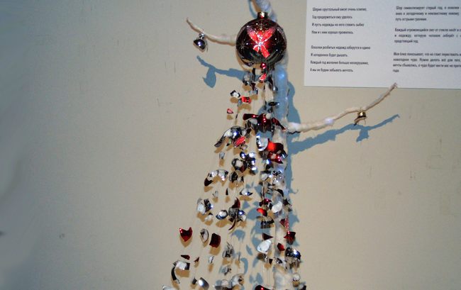 «Елка надежд» Виктории КИРЕЕВОЙ собрана из осколков елочной игрушки, которые, кажется, висят в воздухе. Очень хрупкие надежды!