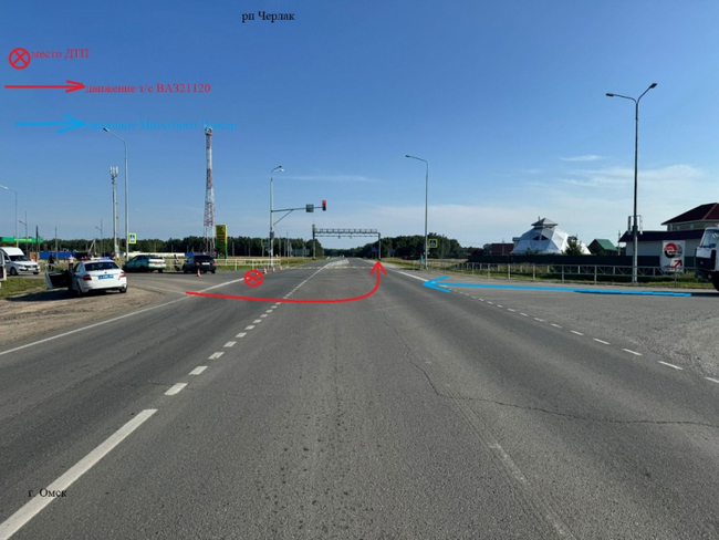 Следственно-оперативная группа ОМВД по Омскому району 29 июля осмотрела место ДТП (на фото) в районе 31-го километра трассы Омск – Черлак. Полицейскими предварительно установлено: 76-летний водитель автомобиля ВАЗ около 16:40 при повороте налево не предоставил преимущество в движении и допустил столкновение с автомобилем Mitsubishi, двигавшимся во встречном направлении.