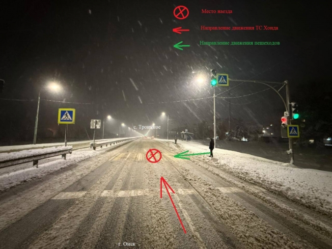 Второе дорожно-транспортное происшествие произошло в районе 14-го километра на трассе Омск-Русская Поляна. Следственно-оперативная группа ОМВД по Омскому району предварительно установила: 47-летняя женщина-водитель автомобиля Honda сбила 12-летнюю девочку, переходящую дорогу по регулируемому пешеходному переходу на разрешающий сигнал светофора. Ребёнок госпитализирован.