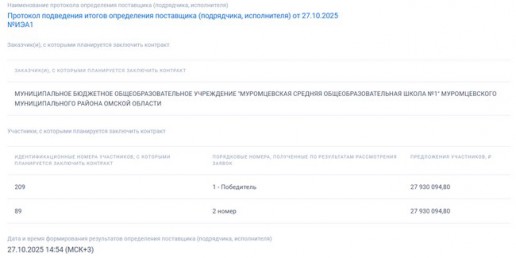 Начавший ремонтировать Муромцевскую школу №1 петербургский подрядчик был признан недобросовестным