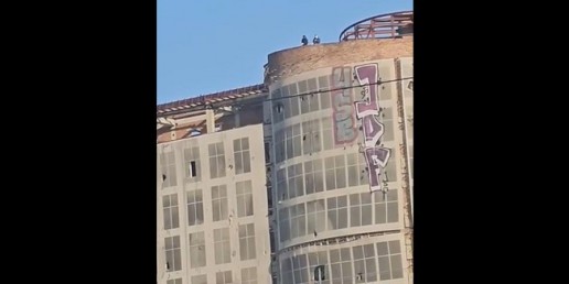 Подростки бросали на проезжавшие мимо автомобили куски льда с крыши здания, которое так и не стало ни отелем Hilton, ни отелем Grand Hotel Omsk