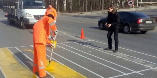 Кроме того, сотрудники компании «СтройТраст» наметили основные контрольные точки на проезжей части – для дорожной разметки