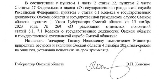 Первого заместителя гендиректора АРИиОО назначили на пост замглавы Минприроды Омской области