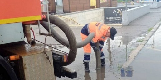 «Управление дорожного хозяйства и благоустройства» откачивает воду с городских улиц