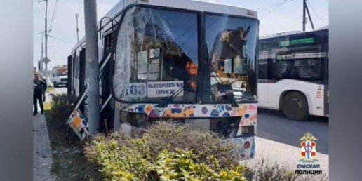 В Омске при столкновении автобуса со столбом пострадали шесть пассажиров