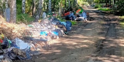 Местные жители уже полтора месяца жалуются на мусор, который администрация не может вывезти с территории деревенского кладбища